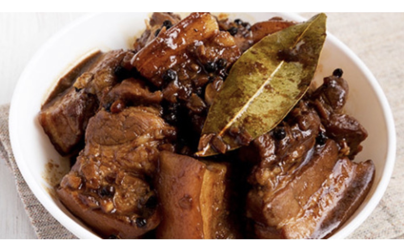 Jamaican brown stew belly Pork served with your choice of Rice dishes – serves two